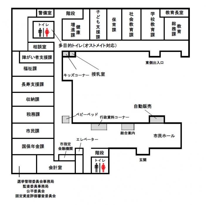 市役所各課配置図(令和7年4月1日現在)※市役所の開庁時間