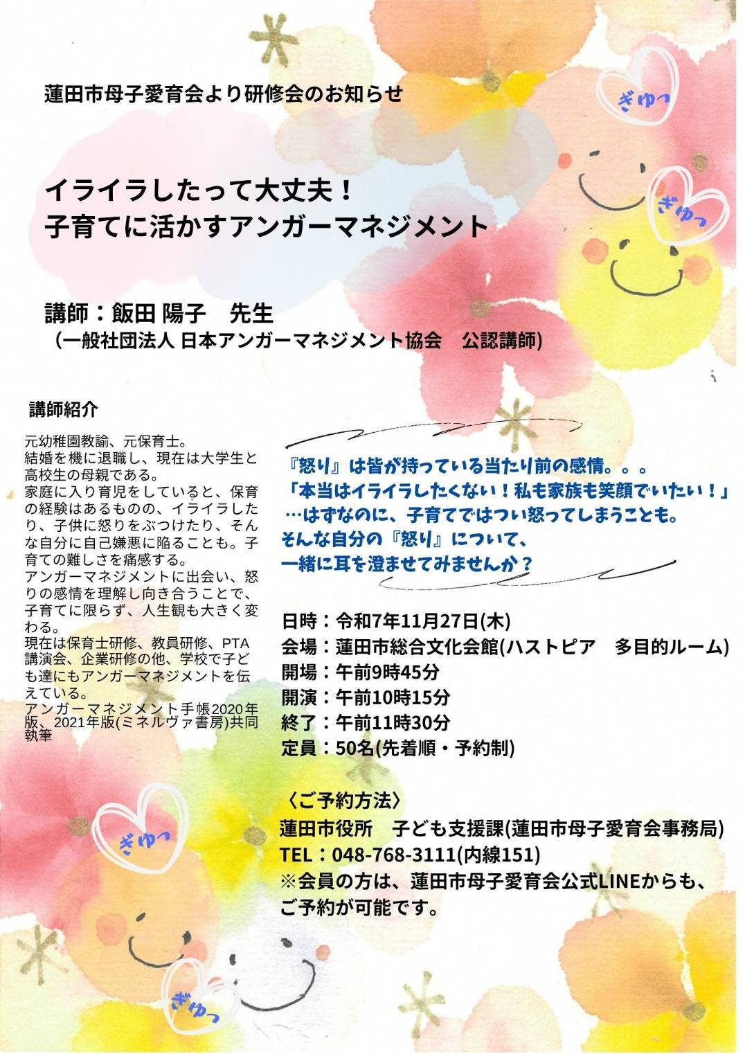 蓮田市母子愛育会が主催する研修会のご案内です。